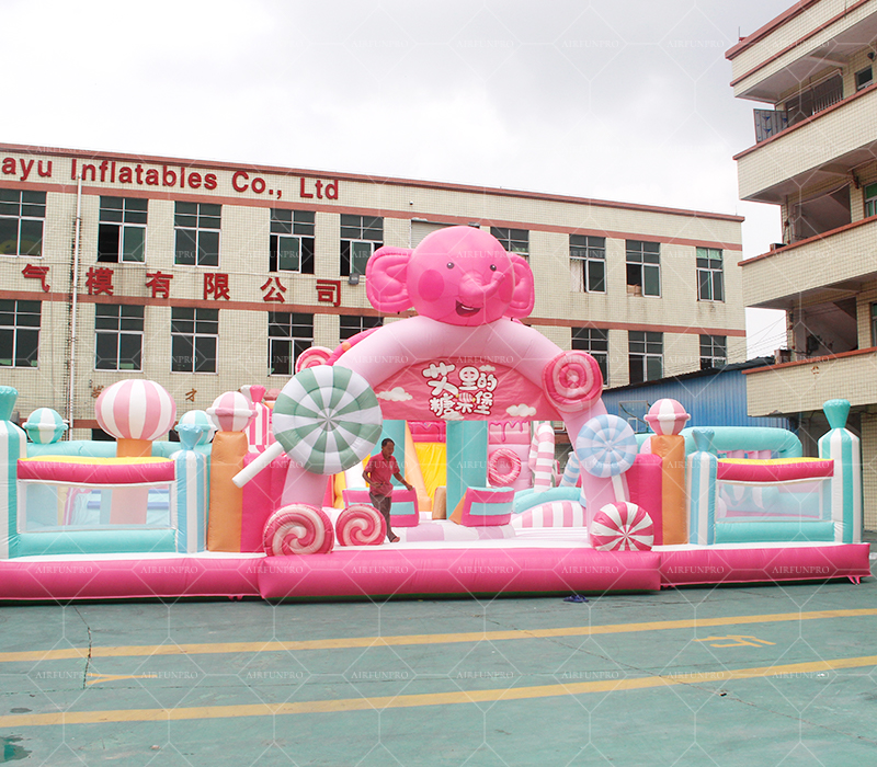 Our structures are made of commercial-grade PVC fabric (0.45mm/0.55mm thickness) with anti-tear coating and non-slip surfaces. All products comply with ASTM F24 amusement safety standards and undergo weekly pressure tests to ensure stability in winds up to 25 mph.