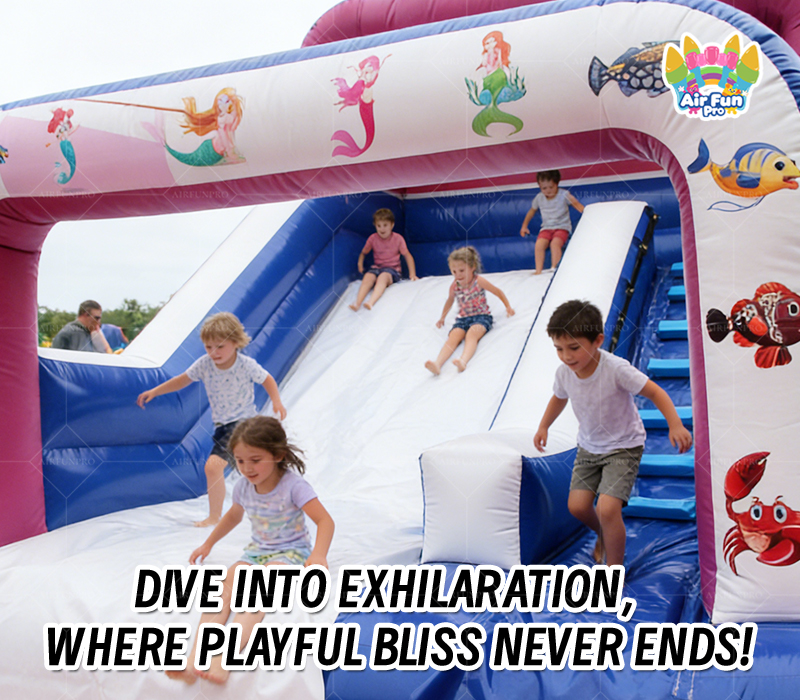 Immersive Ocean Theme: Vibrant mermaid and marine life patterns create a captivating underwater atmosphere, instantly attracting children's attention and making every slide an adventure. The striking blue and pink color scheme stands out in any environment, making it a photo-worthy highlight for any event.