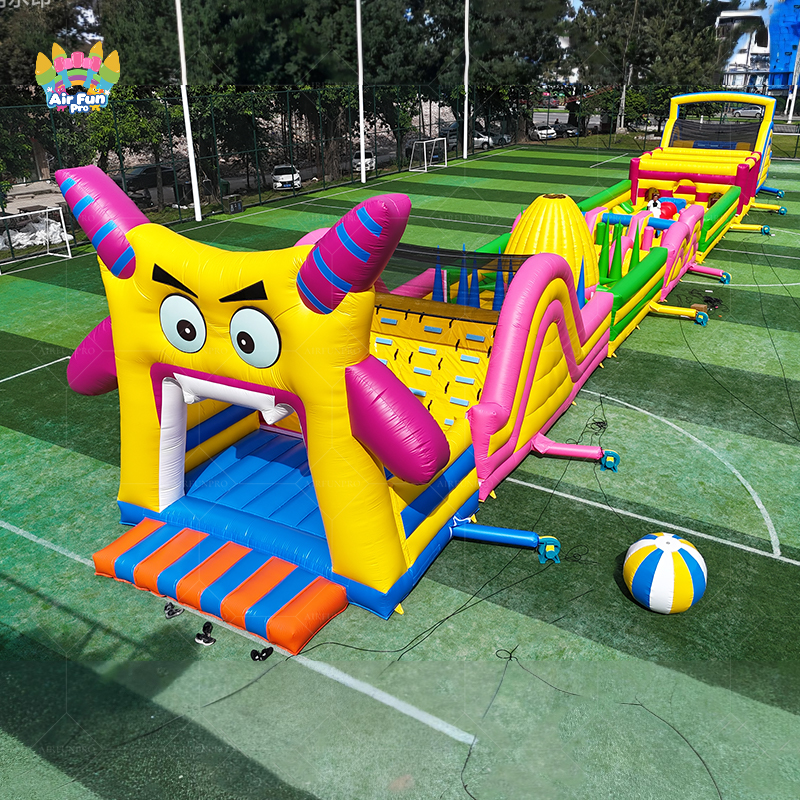Enhance the appeal of your carnival, birthday party, mall event, or amusement park with AirFunPro's monster-themed inflatable obstacle course – this eye-catching attraction will instantly draw in large crowds.