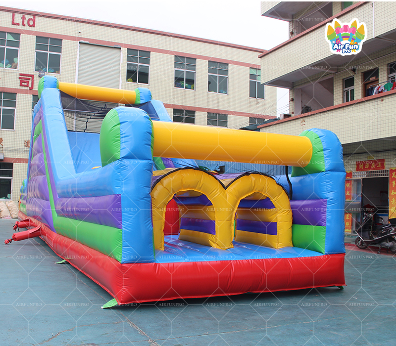 Add a vibrant rainbow of colors to your next gathering with AirFun's Rainbow Inflatable Obstacle Course! Featuring vibrant shades of blue, yellow, green, purple, and red, this eye-catching installation combines thrilling slides, playful double arches, and padded obstacles, making it ideal for birthday parties, school carnivals, community festivals, or corporate team-building events.